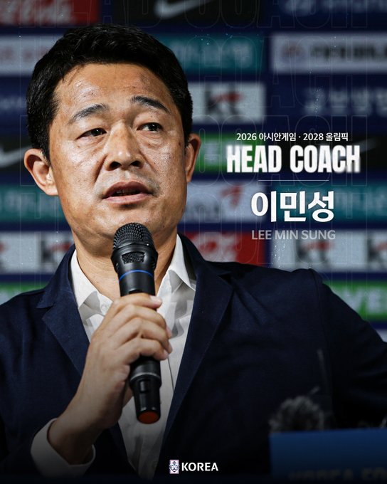 South Korea have officially named Lee Min-sung as the new head coach of the national U-22 team, tasking the 51-year-old with steering the next generation toward the 2026 Asian Games and the 2028 Olympic Games.