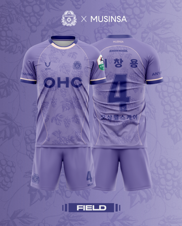이번 유니폼은 국내 대표 온라인 패션 플랫폼 무신사와의 협업으로 제작됐으며, 안양을 대표하는 포도에서 영감을 받은 연보라빛 컬러와 패턴이 특징이다. 디자인 콘셉트는 ‘정체성의 재해석’으로, 과거 포도 재배가 활발했던 안양의 역사적 상징성을 현대적으로 풀어냈다.