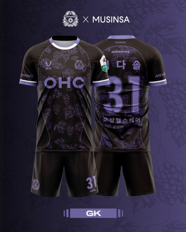 필드 플레이어 유니폼은 상·하의 모두 연보라색을 바탕으로 포도 패턴을 적용해 시각적인 강렬함을 더했으며, 골키퍼 유니폼은 같은 패턴에 올블랙 컬러를 입혀 차별화된 분위기를 자아낸다. 기존에도 보라색을 아이덴티티로 사용해온 FC안양은 이번 유니폼을 통해 더욱 세련되고 대담한 변화를 시도했다.