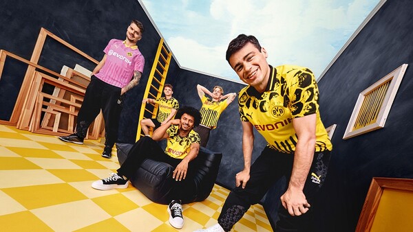 도르트문트 유니폼은 블랙과 옐로우의 상징적인 색상을 유지하면서도 키드슈퍼의 창의력이 더해졌다. 특히 어깨 부분의 육각형 셀 패턴이 벌집에서 영감을 받아 시각적인 재미를 더한다. 골키퍼 킷은 핑크와 옐로우의 강렬한 조합으로 개성을 드러냈다.