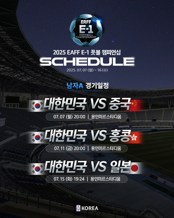 South Korea are set to kick off the tournament on 7 July against China at Yongin Mir Stadium, before facing Hong Kong (11 July) and arch-rivals Japan (15 July) in what is shaping up to be a highly competitive East Asian showdown.