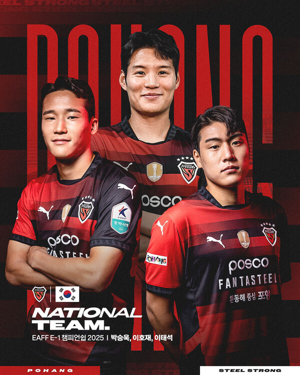 The Korea Football Association announced the national team squad on Sunday for the upcoming 2025 EAFF E-1 Football Championship, and three Pohang players made the list: Lee Ho-jae, right-back Park Seung-wook, and left-back Lee Tae-seok. The trio will join the national team after completing their K League fixture against FC Seoul on June 29.